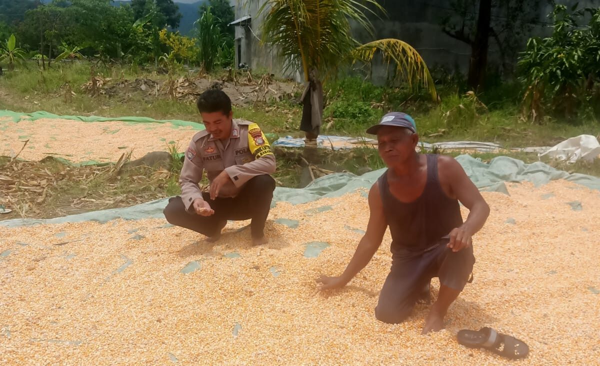 Dalam upaya mendukung Program Ketahanan Pangan Nasional menuju Indonesia Emas 2045, Bhabinkamtibmas Desa Rasabou Polsek Hu’u, AIPDA Fathurrahman, melaksanakan kegiatan pemantauan hasil panen jagung milik warga binaan yang sedang dijemur, Kamis (19/3/2026) sekitar pukul 11.40 Wita hingga selesai.