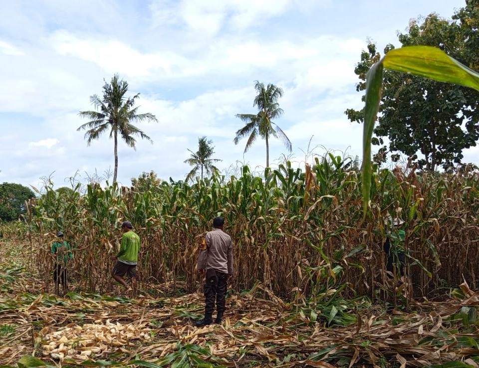 Dalam pelaksanaannya, Bhabinkamtibmas memantau langsung lahan pertanian milik warga bernama Sugian dengan luas sekitar 1 hektar yang tengah memasuki masa panen jagung.