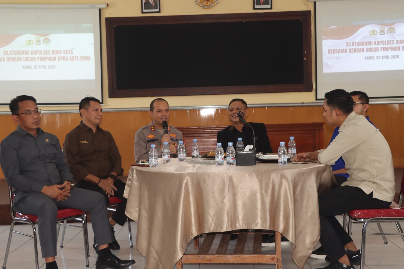 Kota Bima, NTB (3 April 2026) – Dalam rangka memperkuat sinergitas dan membahas situasi keamanan dan ketertiban masyarakat (kamtibmas), pimpinan dan anggota DPRD Kota Bima melakukan kunjungan silaturahmi ke Polres Bima Kota, Kamis (2/4/2026).