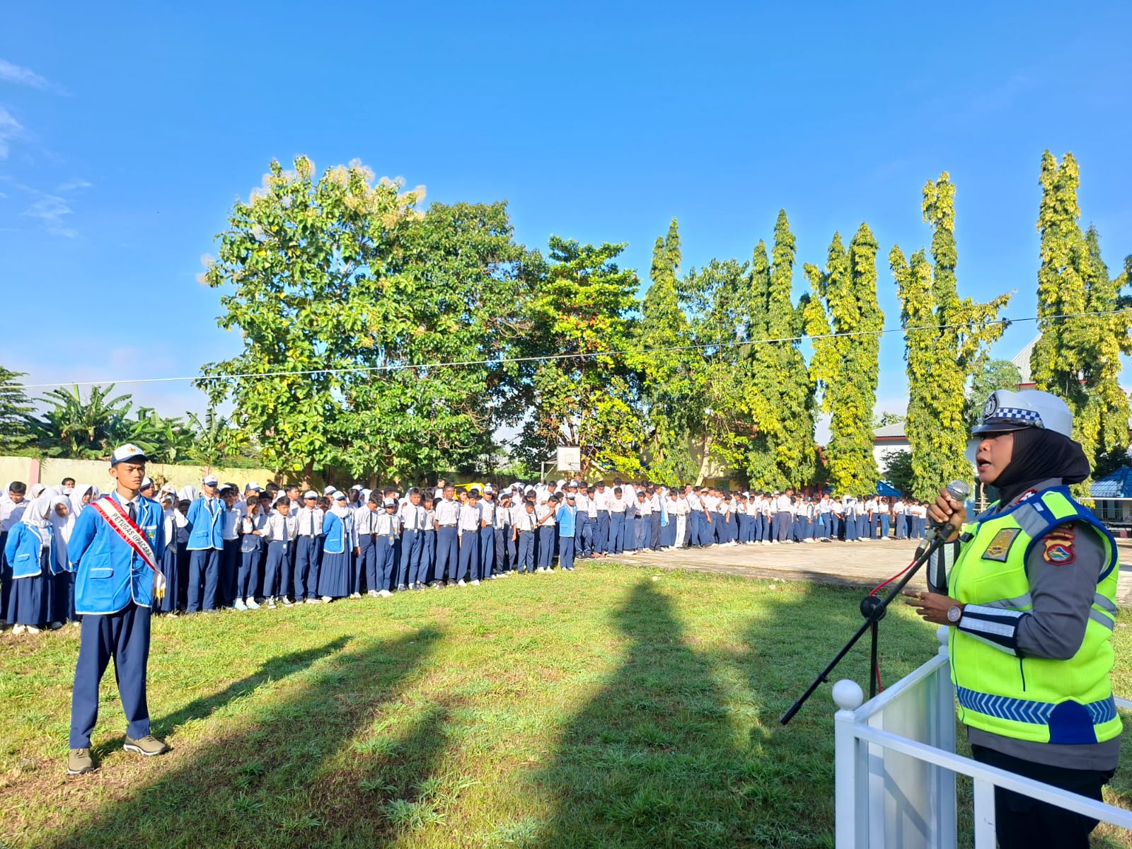 “Kami mengimbau kepada seluruh pelajar agar tidak mengendarai kendaraan bermotor sebelum cukup umur dan memiliki SIM. Keselamatan adalah hal utama yang harus diperhatikan,” tegasnya di hadapan peserta upacara.