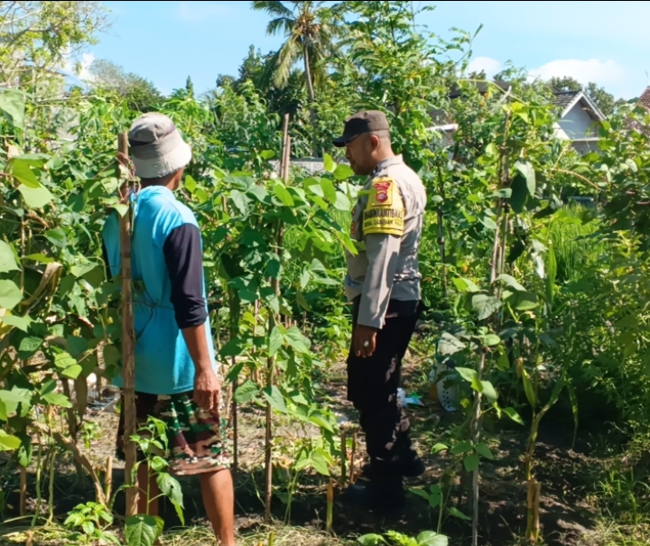 Dalam pelaksanaan tugasnya, Bhabinkamtibmas melakukan silaturahmi dengan warga masyarakat petani di Dusun Sisik. Pada kesempatan tersebut, AIPDA Kurnia Wardy juga meninjau langsung areal lahan Ketahanan Pangan Bergizi (P2B) yang ditanami komoditas jagung dan kacang panjang.