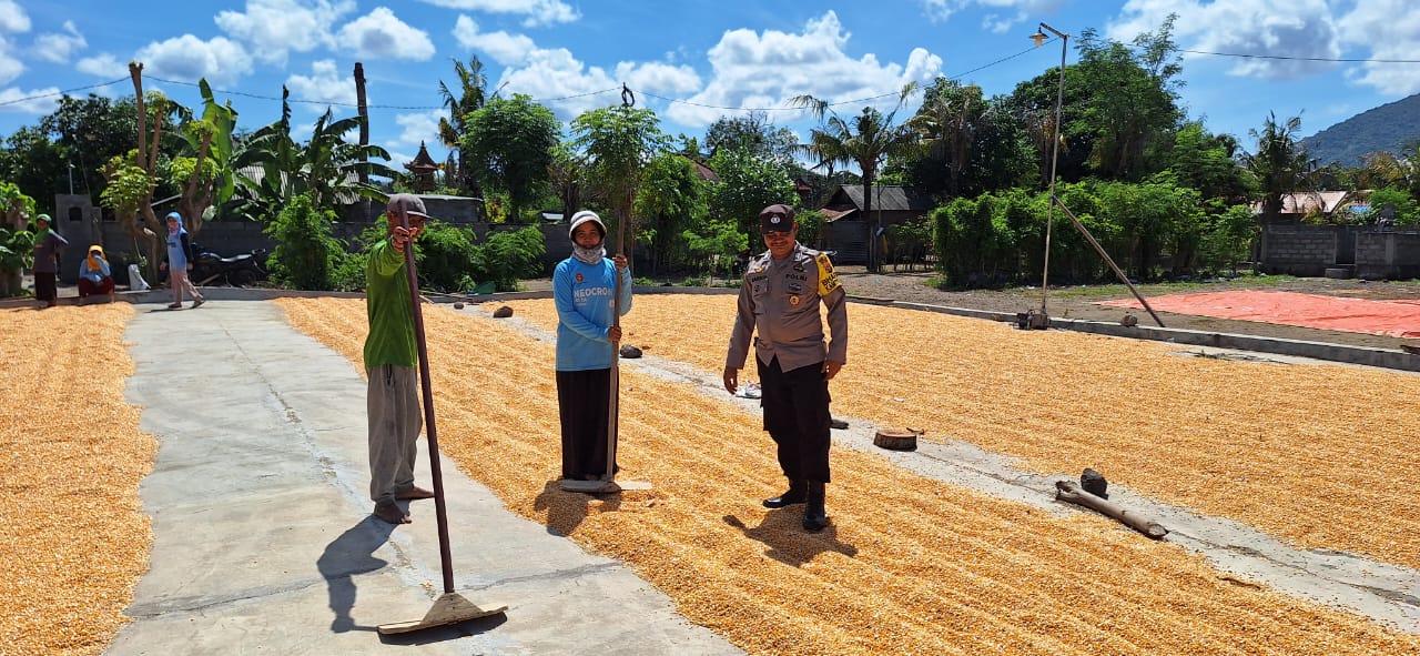 Bhabinkamtibmas Desa Tolokalo, BRIPKA Mahsup, melaksanakan kegiatan pemantauan penjemuran jagung milik warga binaannya di Dusun Kesi, Desa Tolokalo, Kecamatan Kempo, Kabupaten Dompu.
